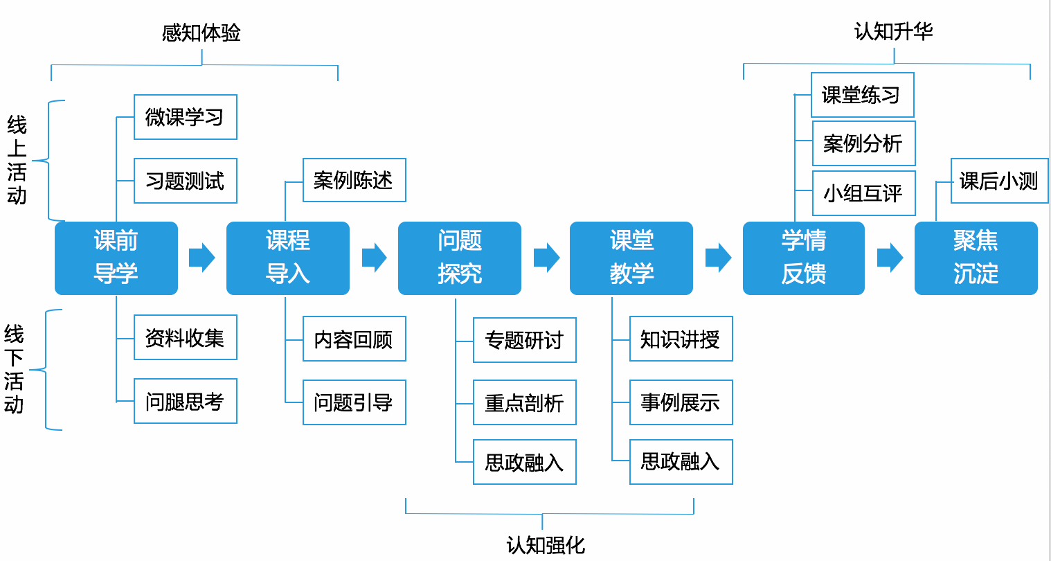 结合财务管理专业第七学期员工考研、就业等实际情况,本课程在教学活动构建过程中打破以往“满堂灌”的教学方式,从提高员工主动学习意识和课前课中课后学习热情以及参与程度的角度出发,重新构建“六步法”和“混合式”教学活动。