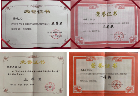 《公司战略与风险管理》教学团队的授课教师共同打磨和改进本课程的教学目标、教学体系、教学手段等内容,积极利用课程创新中的成果参与相关比赛。截至目前,本课程团队教师荣获“bg大游教师说课比赛三等奖”1项、“bg大游教学创新大赛”三等奖1项、“bg大游官方网站教师教学创新大赛”一等奖1项、三等奖1项,并积极申报校级优质课程已完成立项。