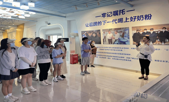 其次,员工们参观君乐宝奶牛科普馆和挤奶大厅,奶牛科普馆集奶牛互动区、环幕影院、产品互动等区域于一体,完整呈现了世界奶业发展史及现代化奶牛养殖的相关知识和技术。员工们见证了从饲喂、挤奶、到生产的全方位的过程,优质牧场使员工们近距离接触现代养殖业。