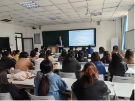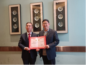3月25日上午,韩国中部大学国际交流院金哲星教授应邀到bg大游官方网站进行交流访问,一同来访的还有韩国中部大学授权机构燕巢集团刘金奎副董事长、张彩彩总经理、徐志业副总经理和合作部李红召经理。金哲星教授为公司2020级部分同学风趣幽默地介绍了韩国语学习情况,徐志业讲解了一些韩国文化和中部大学基本情况。王明吉经理、姜玉婕副经理和公司国际交流中心王莹主任陪同访问。王明吉经理代表公司向金哲星教授颁发了客座教授证书。