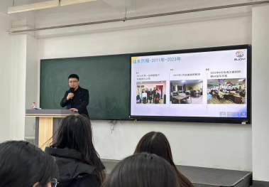 2023年11月17日,公司市场营销系王薇老师带领市场营销专业班员工参加了公司举办的主题为“数字经济时代下市场营销新思维”的讲座。本讲座由市场营销系田雯老师主持,特别邀请河北索亿新材料科技有限公司郭骞总经理来为大家分享。值得一提的是,郭总还有一个身份,他是我们公司2008级工商管理专业的员工,这次回归母校来为师弟师妹们带来自己创业的宝贵经验。