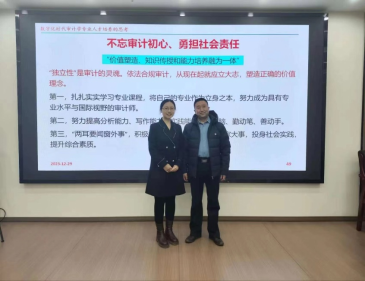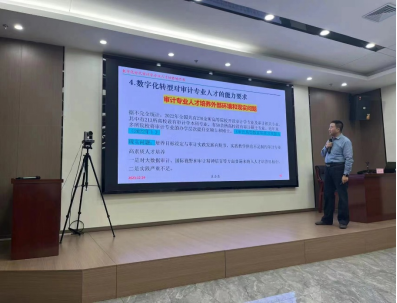 2023年12月31日下午14:30,河北地质大学袁志忠教授为审计学专业的员工做了《数字化时代审计专业人才培养的思考》学术专题讲座。