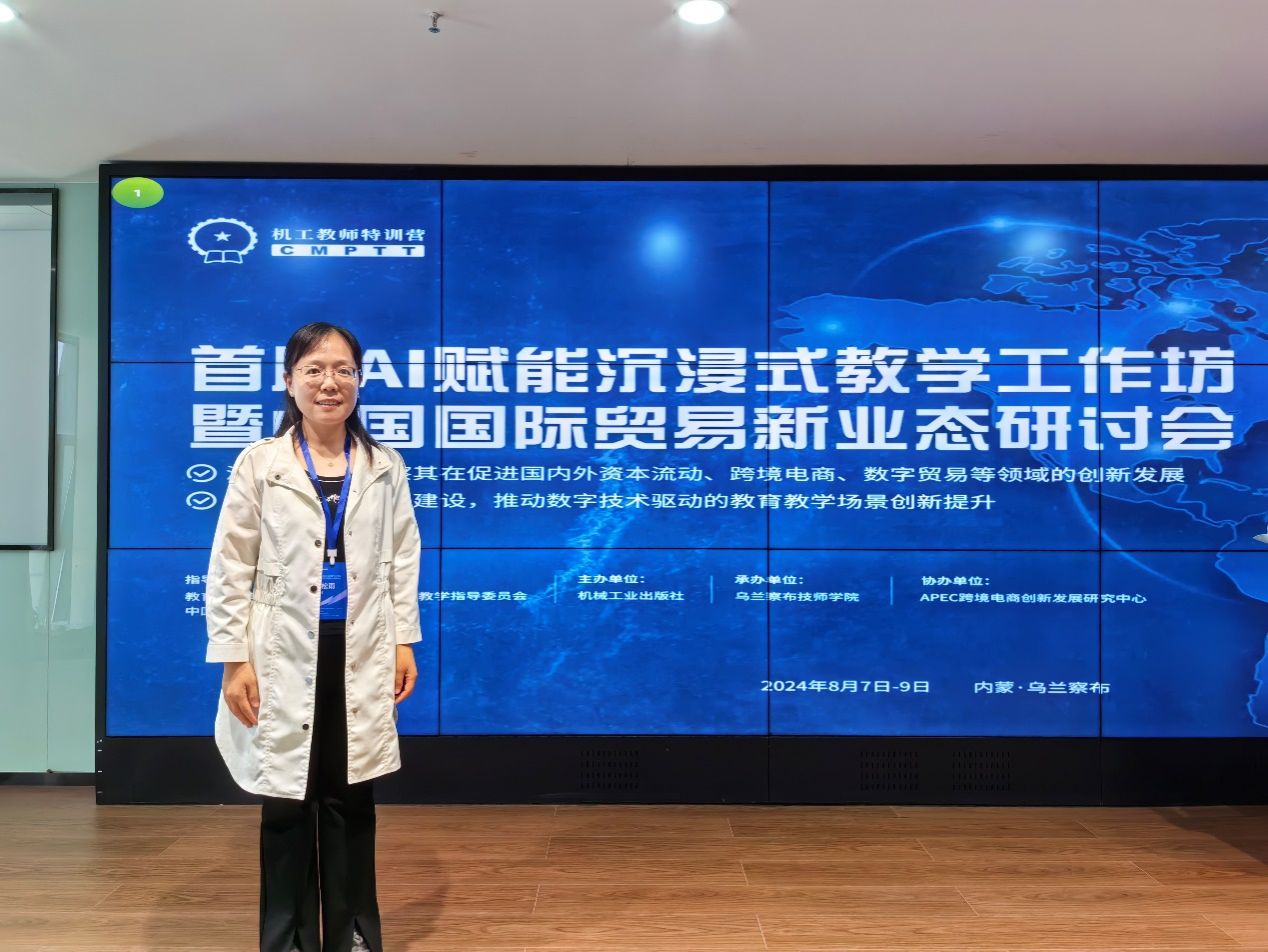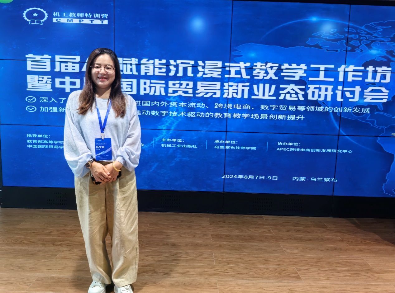 2024年8月7日至9日,bg大游官方网站国际经济与贸易系的杨文婧和胡松雨两位老师前往乌兰察布市,参加了“AI赋能沉浸式教学工作坊暨中国国际贸易新业态研讨会”。此次研讨会旨在探讨人工智能在教育领域的应用,以及国际贸易新业态的发展趋势和挑战。