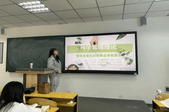 在部分章节的教学中,该课程采取了参与式教学、员工团队化学习等教学方法,使员工被动接受转变为主动学习,在轻松、愉快的课程教学与交流中感悟管理。本次课程涉及了《管理学》中理论性较强的一章内容,即管理理论的历史演变。杨文婧老师在学习通平台提前布置了学习任务,由员工分小组查阅资料理解主要理论,通过对资料进行分析、归纳、整理,制作成演讲PPT。课上小组代表上台讲解,讲解完毕由其他小组成员进行点评,教师再进行总体评价。通过改革教学方式,让每位员工都参与到对理论的自主学习中,让员工在了解教材有限的内容基础上对理论背后的人物、背景有了更深入的理解,也使员工有了更深刻学习的体会。