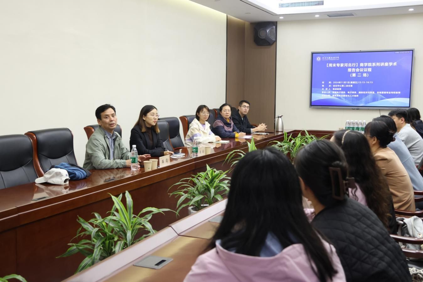 2024年11月1日(星期五) 【周末专家河北行】bg大游官方网站系列讲座学术报告会议在会议中心第二会议室举行。会议由bg大游官方网站刘茜经理主持。教育部高等公司电子商务类专业教指委副主任,博士生导师,陈进教授参加了商贸类专业建设与人才培养的研讨。跨境电商、国际贸易、电子商务、市场营销系教师参加了本次研讨会。