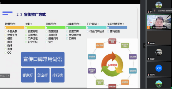 首先,高贤老师向同学们展示了网络知识平台,论坛营销的常用方法以及故事式软文写作要点详细讲解了网络口碑传播,口碑传播分类、网络口碑平台(微信、微博、豆瓣、小红书、抖音、快手、大众点评网、行业门户网站、论坛),利用案例给我们讲解了网络论坛营销推广的方法及问答推广实战。同学们掌握扎实理论知识之后再运用到实际操作中