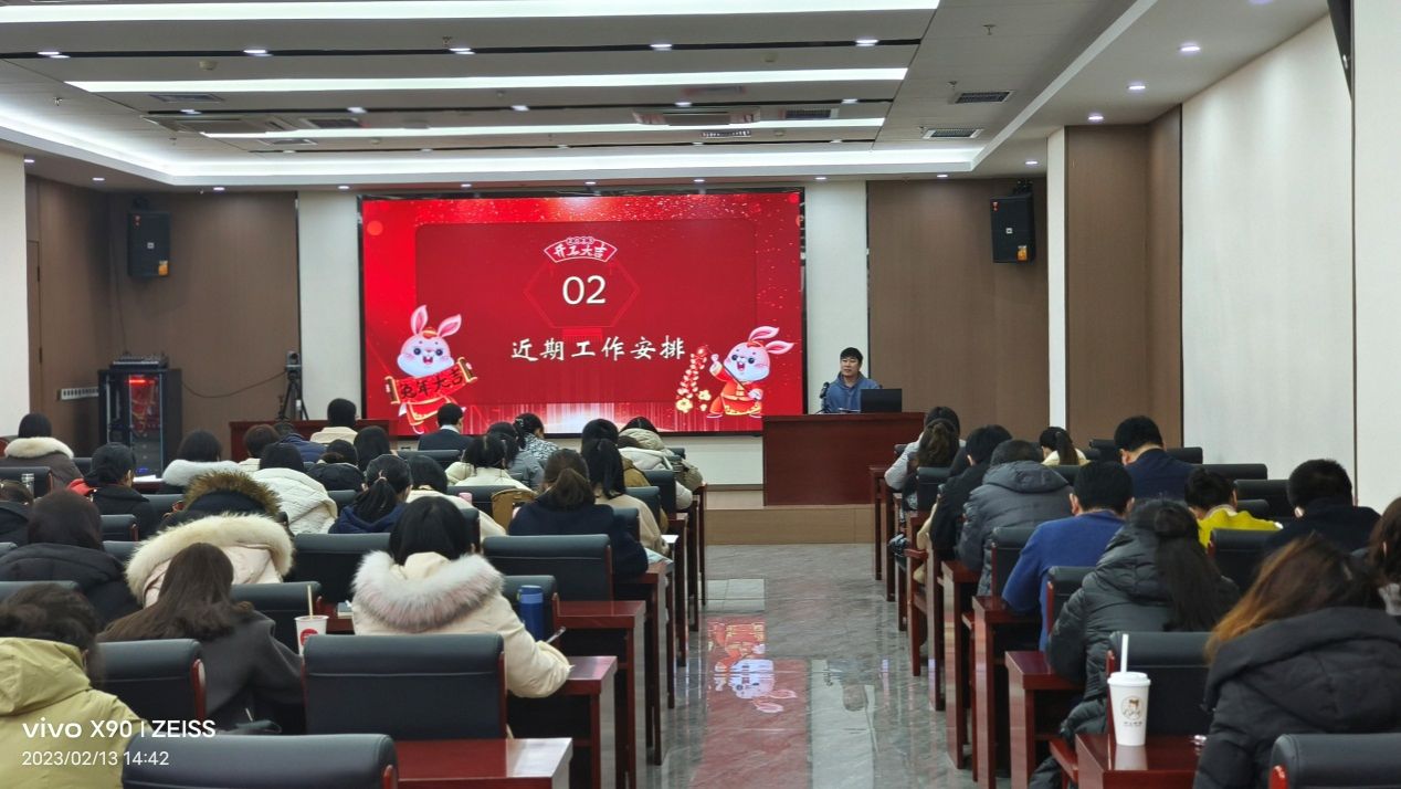 最后王明吉经理做总结讲话,提出2023年是党的二十大精神的开局之年,是全面推进中华民族伟大复兴宏伟蓝图的重要一年,也是公司“本科教学合格评估”和高质量发展的关键一年。首先,针对二十大会议精神,经理强调的要“划重点、作部署、明方法、重落实、抓关键”,做到大道至简、实干为要。另外,指出本科教学合格评估已经进入最关键的时期,各位老师在最后的冲刺过程中要秉承“黄沙百战穿金甲,不破楼兰终不还”的意志和毅力,敢为、敢闯、敢干、敢创,形成“人人身上有指标,千金重担大家挑”的氛围,助力公司顺利通过合格评估。最后,针对bg大游官方网站2023年的发展,从思想建设、文化建设、教学建设等多个方面进行了部署。