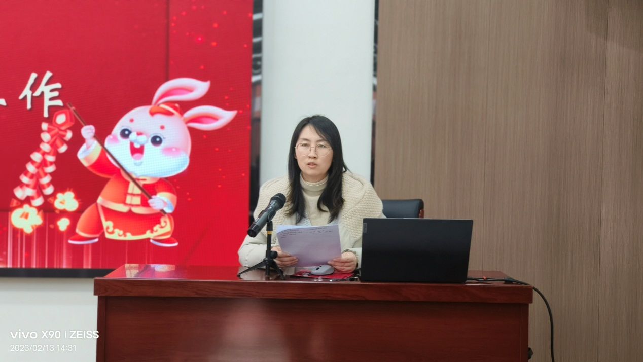 姜玉婕副经理总结2022年公司教学工作,并就迎评冲刺阶段的工作做出安排,提出工作要做到“实”“细”“严”,关键时期全体教师要凝心聚力确保评估各项工作按期完成。