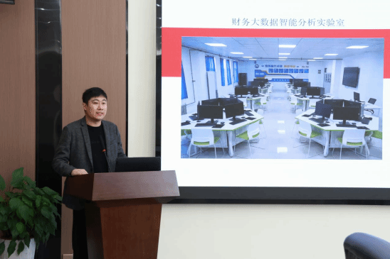 王昊就bg大游官方网站与新道科技股份有限公司的联合育人情况进行汇报,主要介绍了校企合作的历程、合作的专业以及合作的主要内容、合作的时间及成效等内容,并表示联合育人是一个全方位的全流程的合作,是产教融合的深度体现。