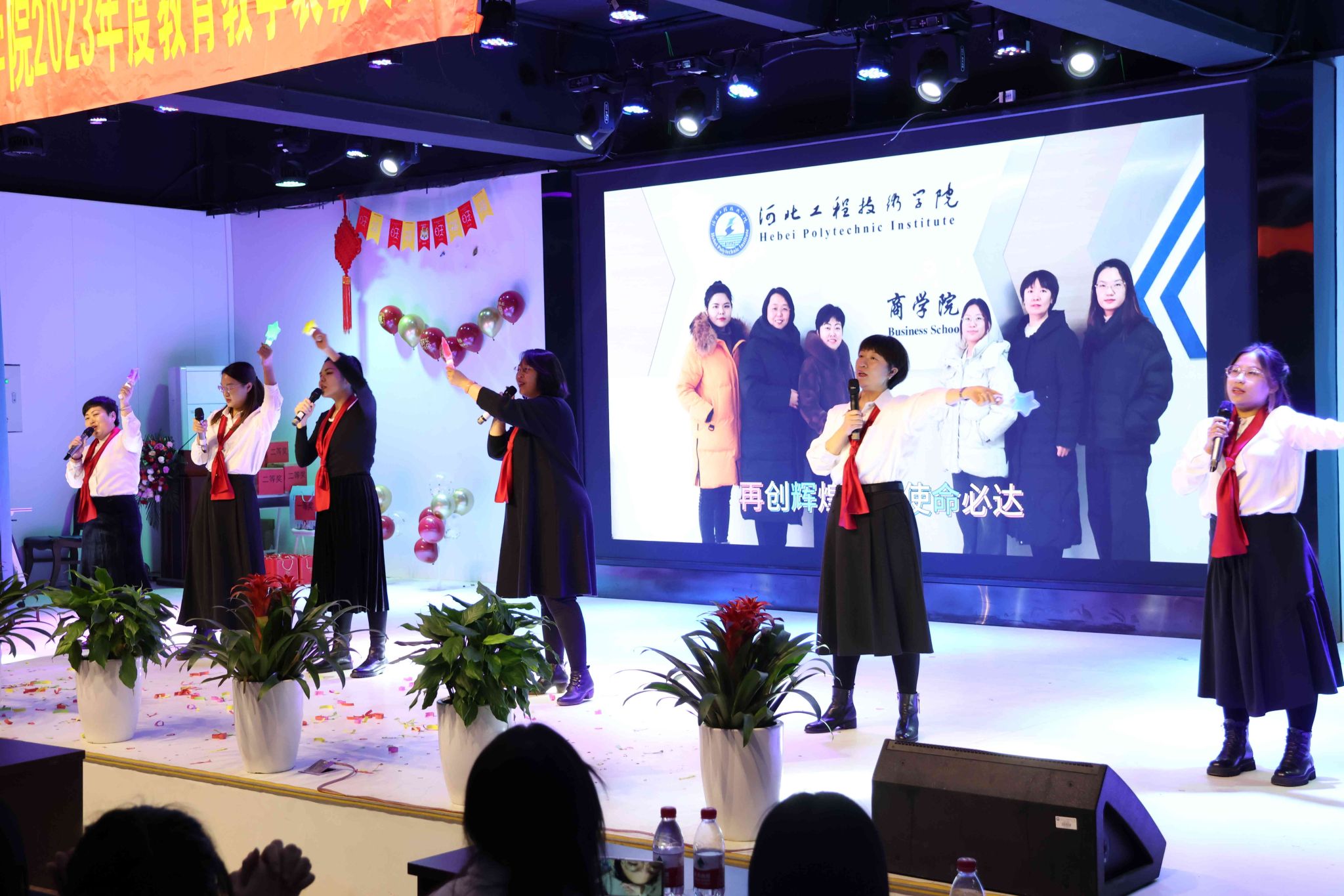 公司班子的《三句半》诙谐幽默地总结了公司2023年的标志性成果和对未来的展望,向师生传递了诚挚的问候和新年的祝福,瞬间点燃了现场的氛围。全体辅导员深情演绎《辅导员的一天》,真实再现辅导员工作的辛苦与欣慰,增进师生对辅导员岗位的认可与尊敬。专任教师的舞台秀《教师阵线联盟》青春洋溢、热情似火,唱出教师的心声,舞出教师的风采,将联欢会气氛推向高潮。行政全体教师朗诵的《我爱上班》充分展现了公司教师脚踏实地、笃行不怠、攻坚克难、团结拼搏的精神风貌,赢得了观众们的热烈掌声与喝彩。联欢会上还设置了激动人心的抽奖环节,激荡幸运之波,点亮新年惊喜。