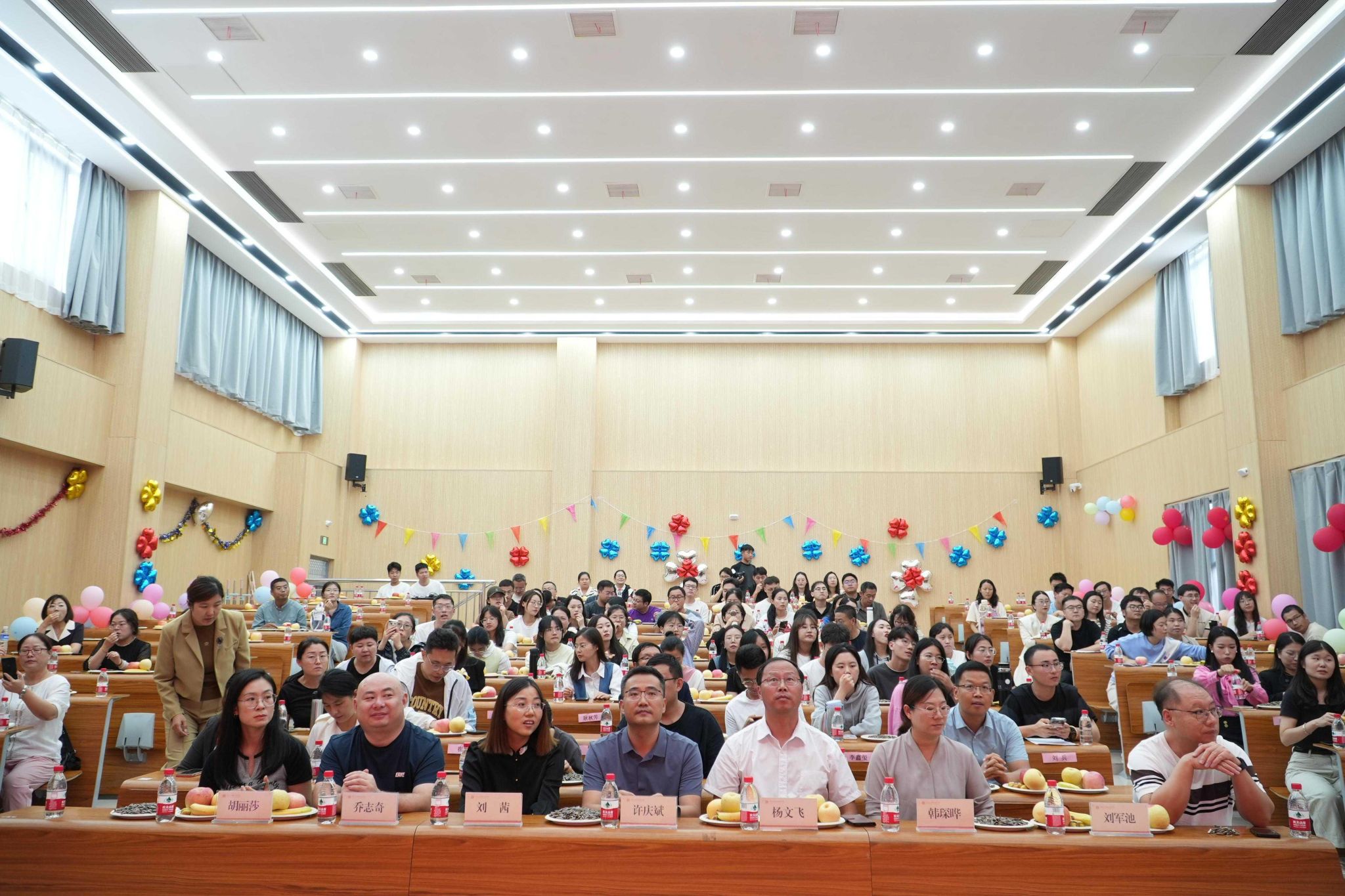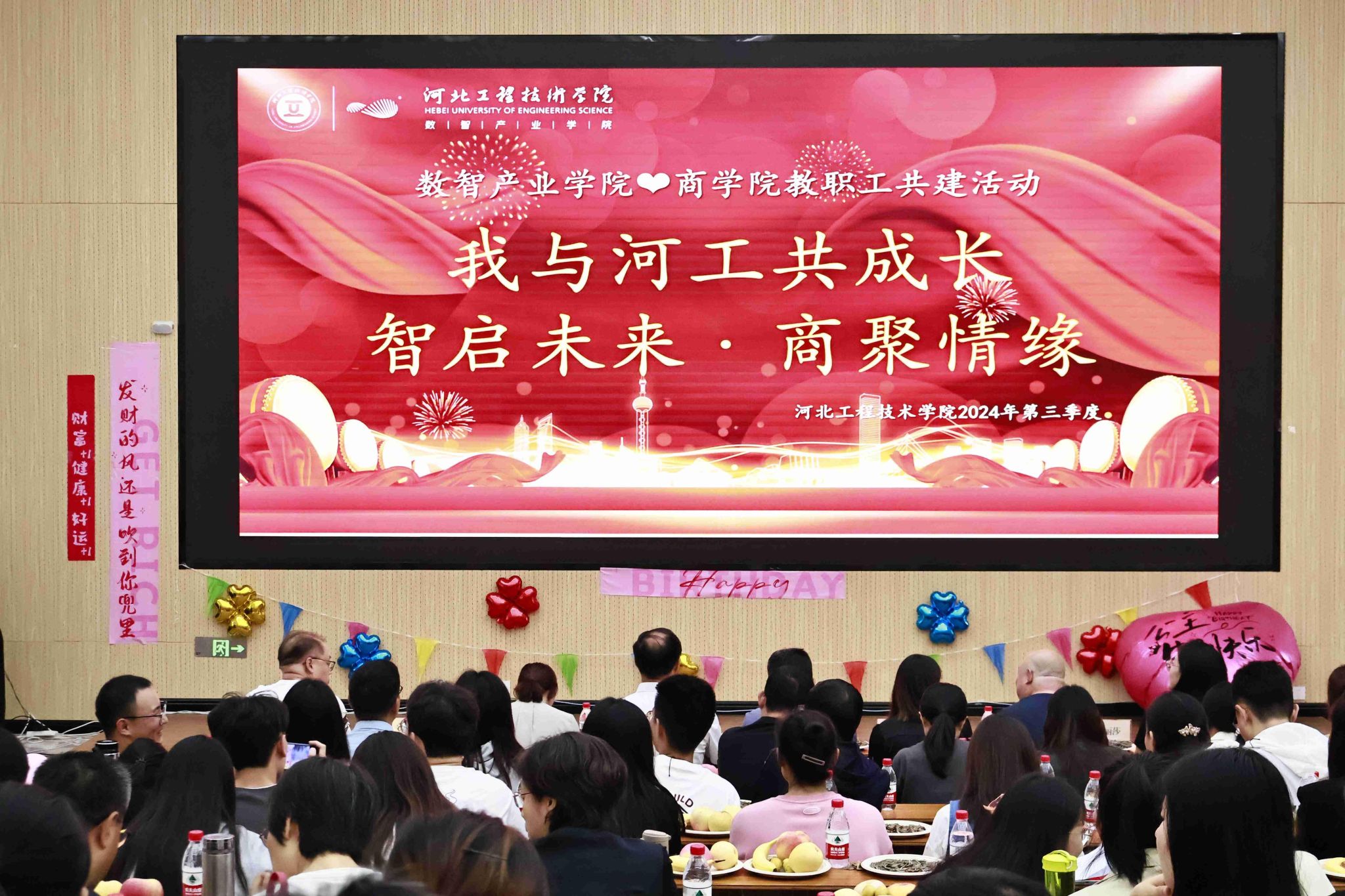 校工会主席、招生处处长许庆斌亲临现场,bg大游官方网站、数智产业公司和新龙集团共计180余名教职工参会。生日会在温馨的氛围中拉开帷幕。精心布置的场地,五彩斑斓的气球,漂亮的彩带,温馨的生日标语,让每一位参与者都感受到浓浓的生日气息。