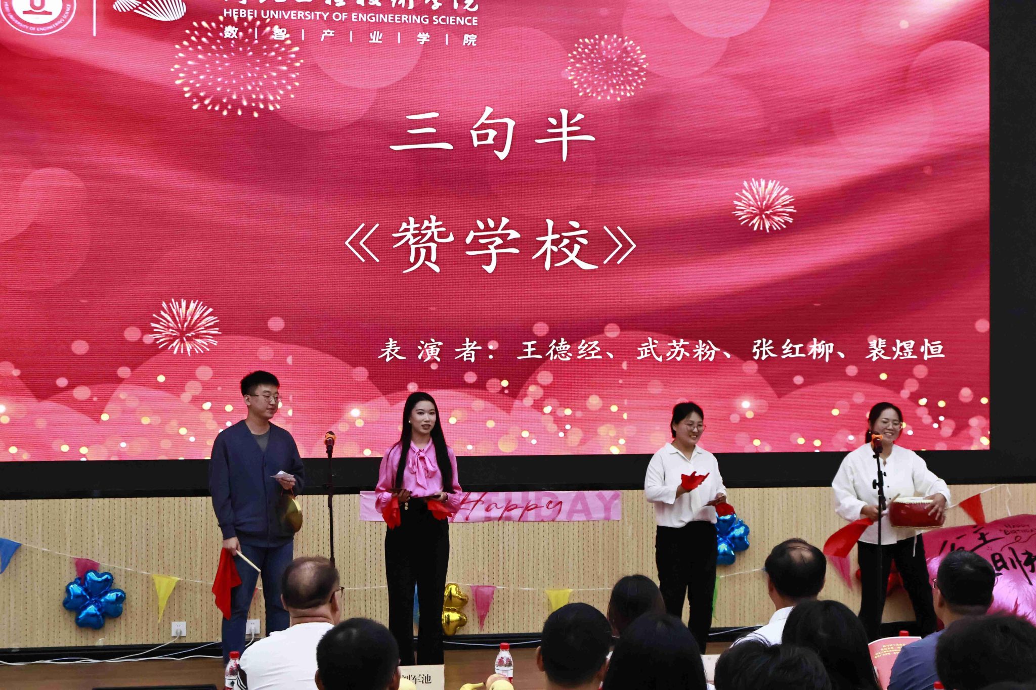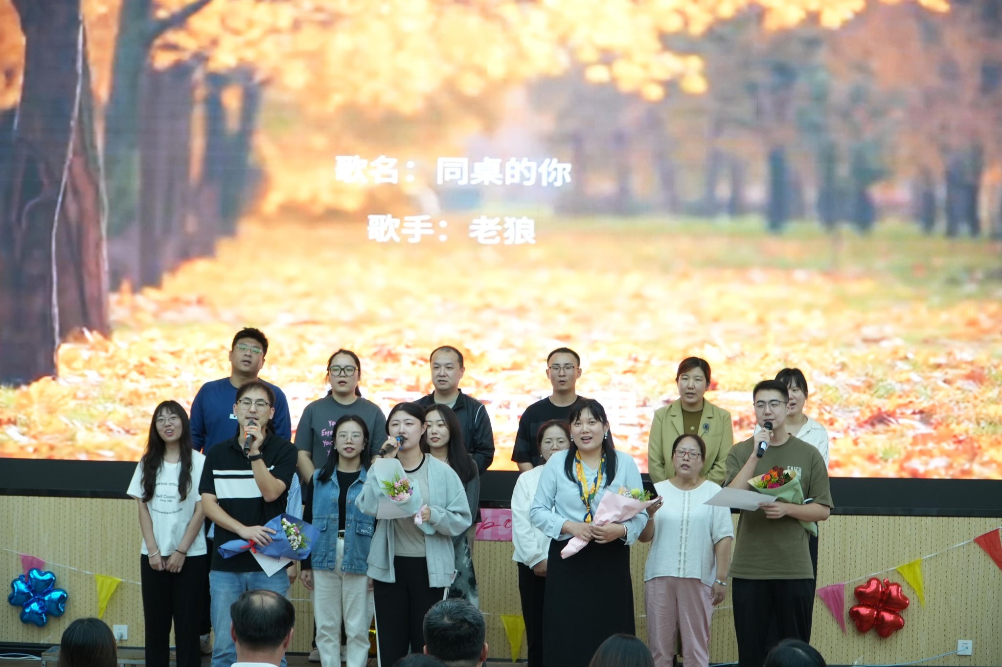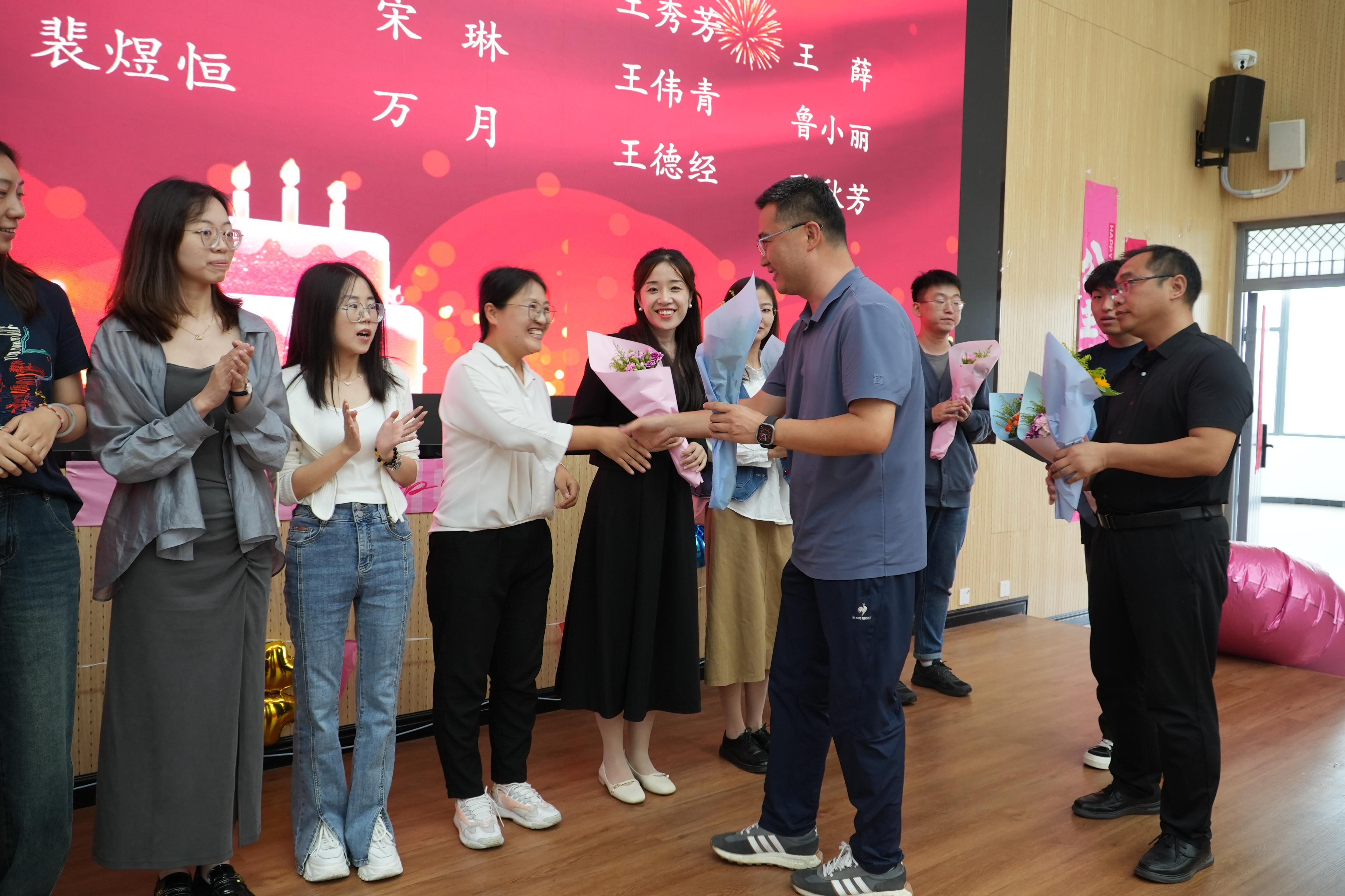 随后,寿星们有序分组登台,许庆斌主席、杨文飞经理、刘茜书记为他们一一送上精心准备的生日礼物和生日祝福。这份礼物不仅代表着对他们生日的祝福,更体现了公司对他们的关心、关怀和关爱。全体教职工则一起唱响生日快乐歌,共庆生辰,领导与寿星们合影留念。精彩的节目轮番上演。数智产业公司经理兼党总支书记杨文飞献上了开篇歌曲《为了谁》,歌声悠扬,赢得了阵阵掌声;bg大游官方网站表演的三句半则幽默风趣,逗得大家哈哈大笑。老师们都使出了自己的“杀手锏”,让活动多姿多彩。在表演过程中,还穿插了有趣的互动游戏,如“你划我猜”、“听歌识曲”等,寿星们和其他参与者积极参与,现场气氛热烈非凡。随着相机快门的轻响,合影定格了这一刻的美好。教师们的笑脸在镜头前绽放,如同秋日里最绚烂的花朵。
