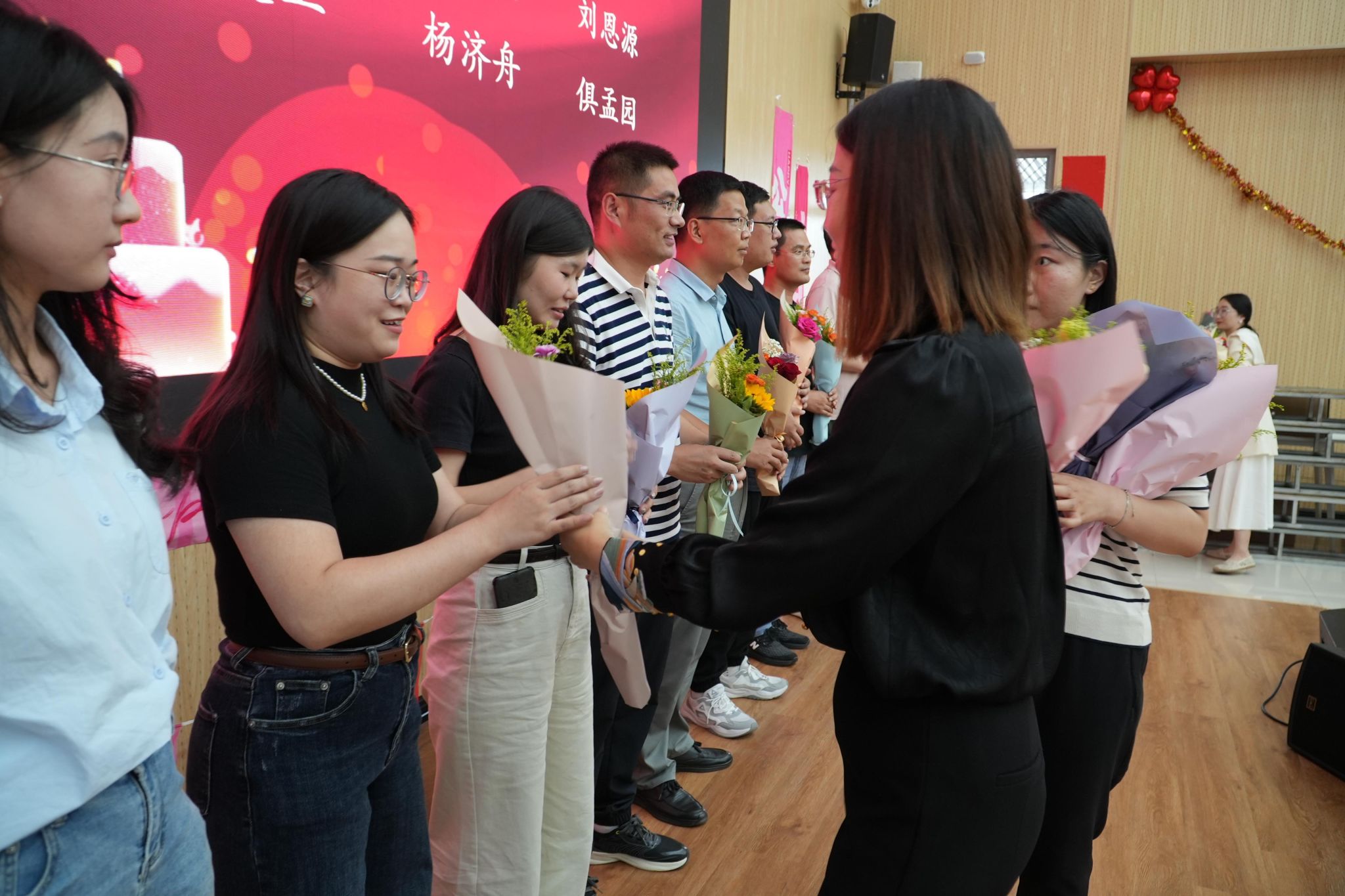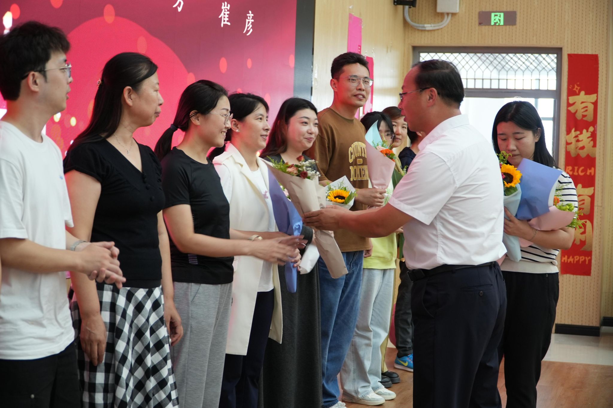 与会领导为老师们颁发生日礼物
