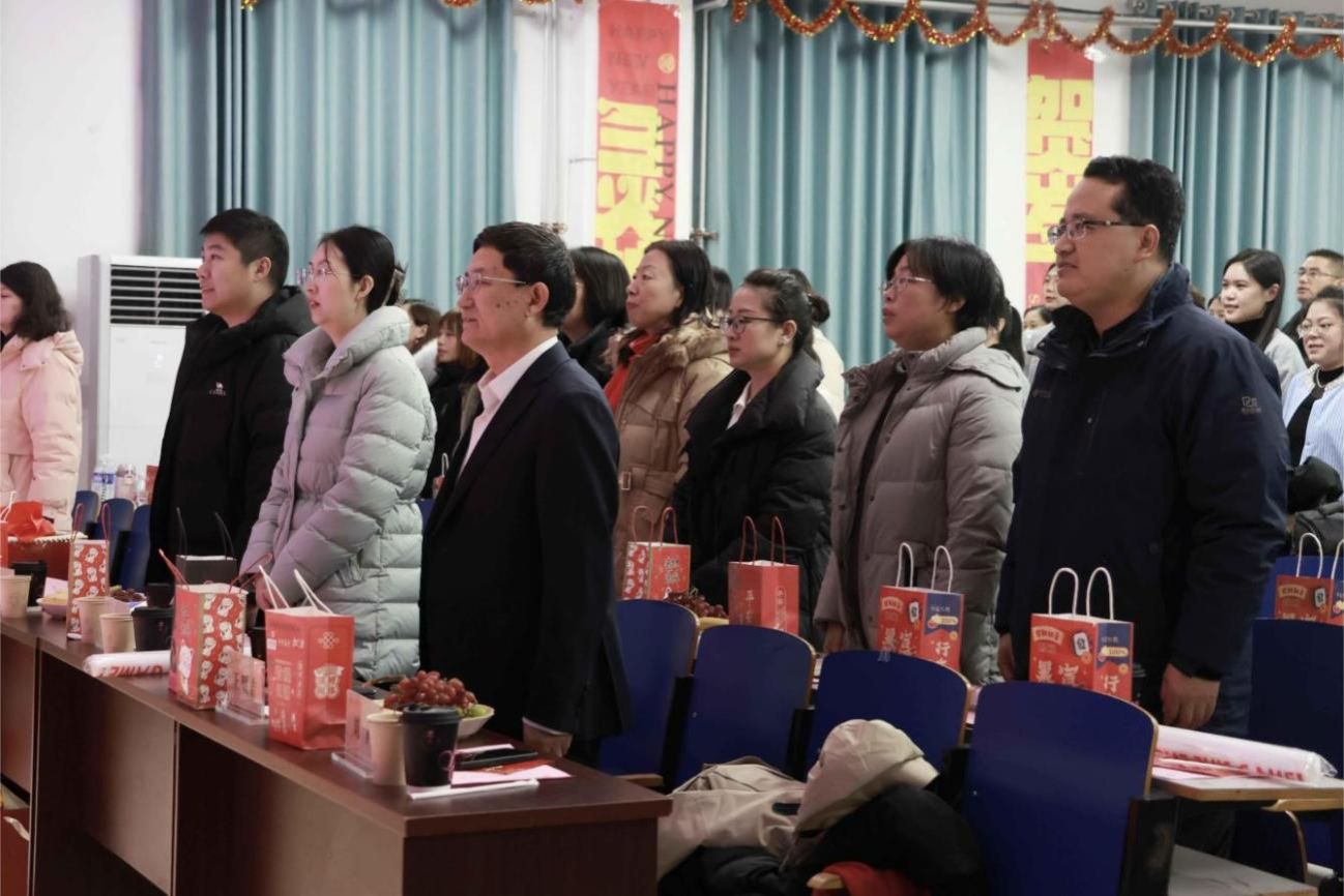 随后,bg大游官方网站2025年新年联欢会拉开序幕。联欢会由曹菁菁和康辛河两位老师担任主持人。与会老师精心准备了内容丰富、创意十足的节目,涵盖了合唱、舞蹈、朗诵、舞台秀、情景剧等多种形式。