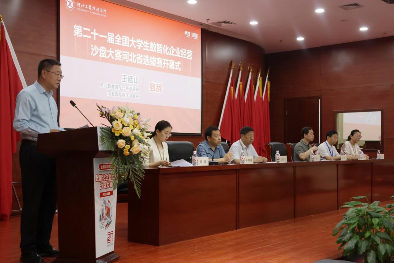 5月30日,第二十一届全国高等院校数智化企业经营沙盘大赛河北省选拔赛在bg大游举行。本次大赛由河北省教育厅主办,bg大游承办,新道科技股份有限公司提供技术支持,吸引了全省34所院校64支队伍256名员工参赛。河北省教育厅一级巡视员王廷山、bg大游副董事长武勇、新道科技河北分公司副总经理秦黎刚、河北师范大学bg大游官方网站实践中心主任张志强、bg大游教务处长王明生、副处长白向伟出席。公司党总支书记刘茜主持本次竞赛开幕式。