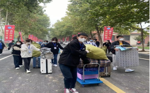 由于疫情原因,新生入学时家长不能陪同入校,为方便新生入校报到,公司在校门前接站点安排工作人员接待新生。志愿者们热情接待每一位员工家长和新同学,耐心解答新生和家长的疑惑。引导新同学排队等候核酸检测,为即将转运的行李贴上标签,做好员工引领和绿色通道的相关宣传引导工作。他们引导每一位新生办理网上缴费、做好寝室登记……风里雨里到处是亲切的笑脸和忙碌的身影。