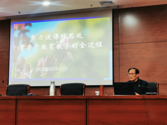 讲座主要包括四个方面:一是确立课程思政的新理念,在教学过程中贯穿教书育人的主旨;二是落实课程思政对教育工作者的高度要求;三是努力提高教学效果,打造教学的“金课”;四是必须提高对于课程思政方面教学语言重要性的认知度。朱教授从思维方式的角度进行切入,给老师们讲了课程思政在教学过程中应用的重要性,理论与实践融会贯通,在座的各位教职工受益匪浅