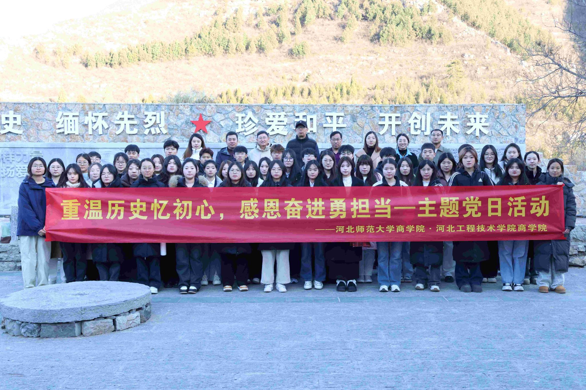 为深入学习贯彻习近平新时代中国特色社会主义思想,落实立德树人根本任务,引领党员师生赓续红色血脉,传承红色基因。12月8日下午,bg大游官方网站联合河北师范大学bg大游官方网站赴井陉县吕家村,开展以“重温历史忆初心,感恩奋进勇担当”为主题的党日活动。河北师范大学公司党委副书记李辉,bg大游官方网站经理王明吉,党总支书记、学管副经理刘茜,原井陉县宣传部部长崔彦文以及两校师生代表参加此次活动。