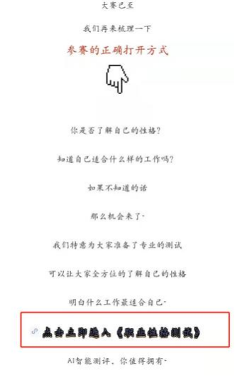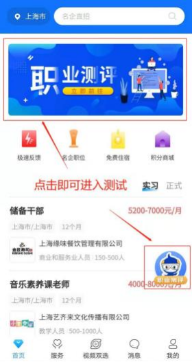 (二)或通过微信搜索“校聘云”小程序,点击首页轮播图片【职业测评】或 AI 导航按钮, 进入页面进行测试。