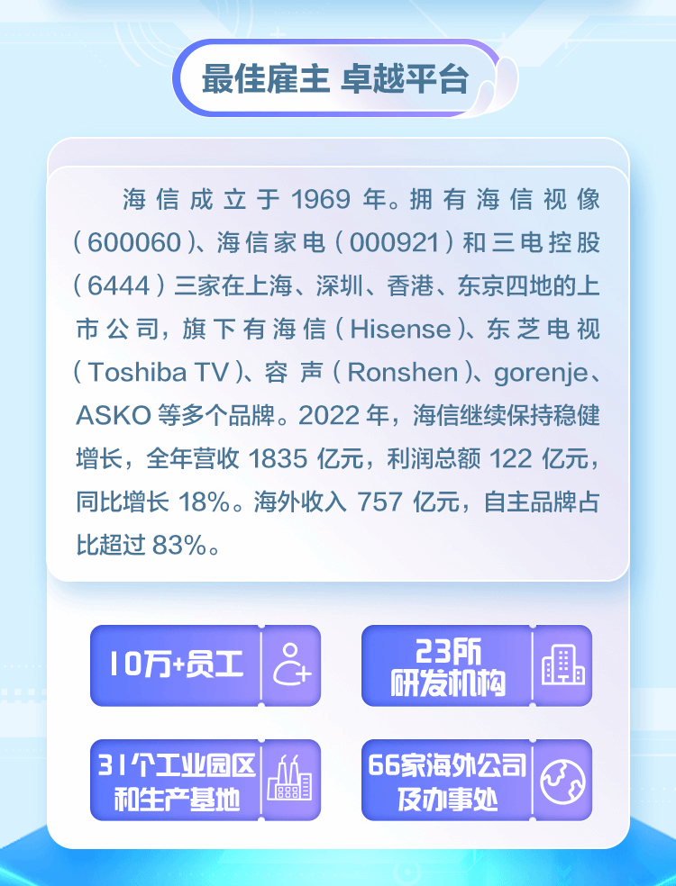 日期: 2023-04-23      发布:岳亚鑫      信息来源: 海信集团招聘      点击数: