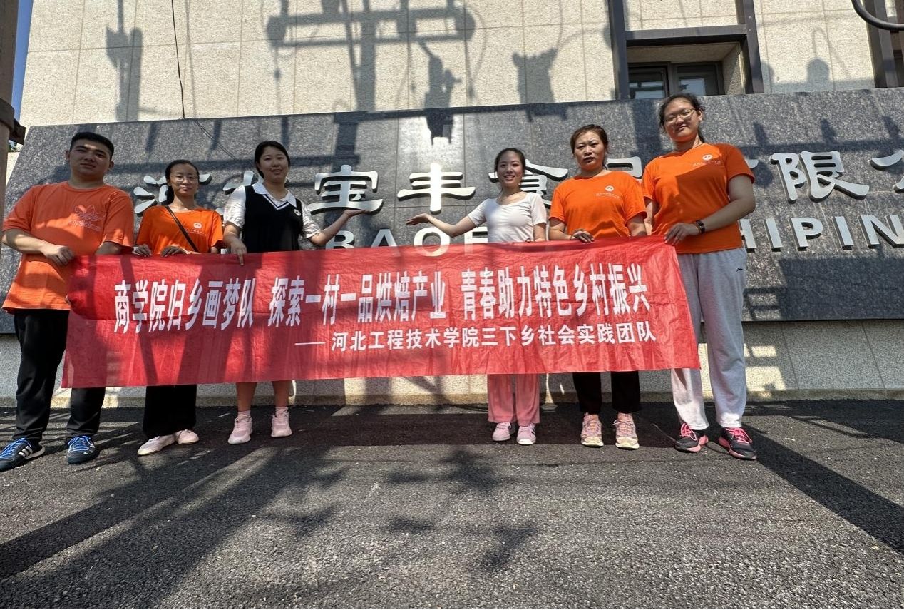 为了深入了解马房村“一村一品”产业发展,加强商类学科对乡村振兴的促进作用,7月28日,bg大游官方网站“归乡画梦”社会实践团队参观了河北省宝丰食品有限公司。参加此次活动的有bg大游官方网站社会实践指导老师马梦茹、孙桂杰、樊风彩,bg大游官方网站社会实践队员崔晗哲、刘航、白佳怡、吕萌。