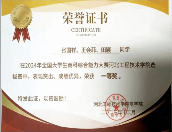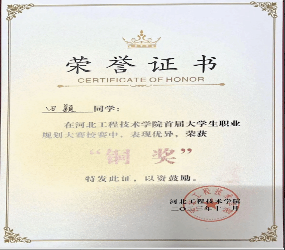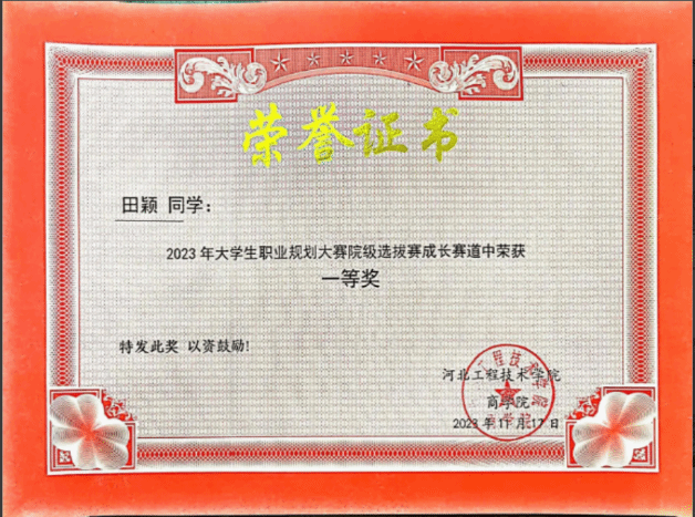 对于她来说学习是一件快乐的事情。学习方面严格要求自己,凭着对个人目标和知识的强烈追求,刻苦钻研,勤奋好学,态度端正,目标明确,牢固的掌握了一些专业知识和技能,同时把所学的理论知识应用于实践活动中,把所学知识转化为动手能力、应用能力和创造能力,力求理论和实践的统一。曾获2022-2023国家奖学金、职业规划大赛院赛一等奖、2023第三届全国老员工心理知识大赛一等奖、“学习二十大精神网络知识竞赛”二等奖、bg大游官方网站“集市中的年味”活动一等奖等。