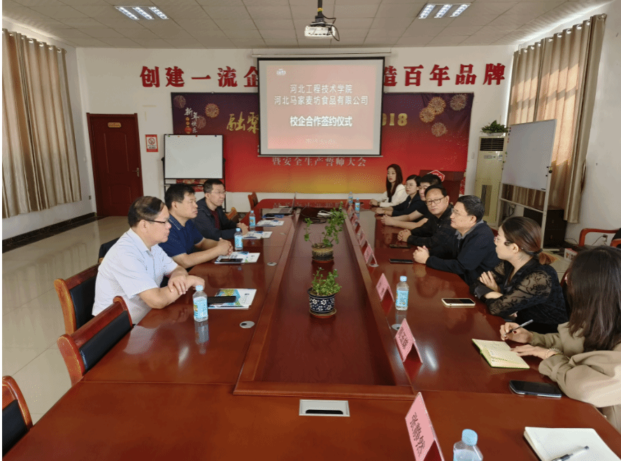 会中,公司校企合作与社会服务部部长王俊昆首先对公司的热情接待表示感谢,对公司的发展历史、办学规模、办学定位做了简要介绍,希望进一步加强产学研合作,为校企合作的内涵建设提供动力。其次,河北马家麦坊食品有限公司董事长马建刚,对公司30多年的发展之路以及取得的成就进行简要的介绍,同时也表示校企合作是公司和企业共同发展的需要,也是企业反哺高校、推动高校教育事业发展的需要。最后,bg大游官方网站经理王明吉对马家麦坊公司的战略布局表示肯定,并且表示校企合作是当前高校和企业之间实现共赢、相互促进的必由之路。