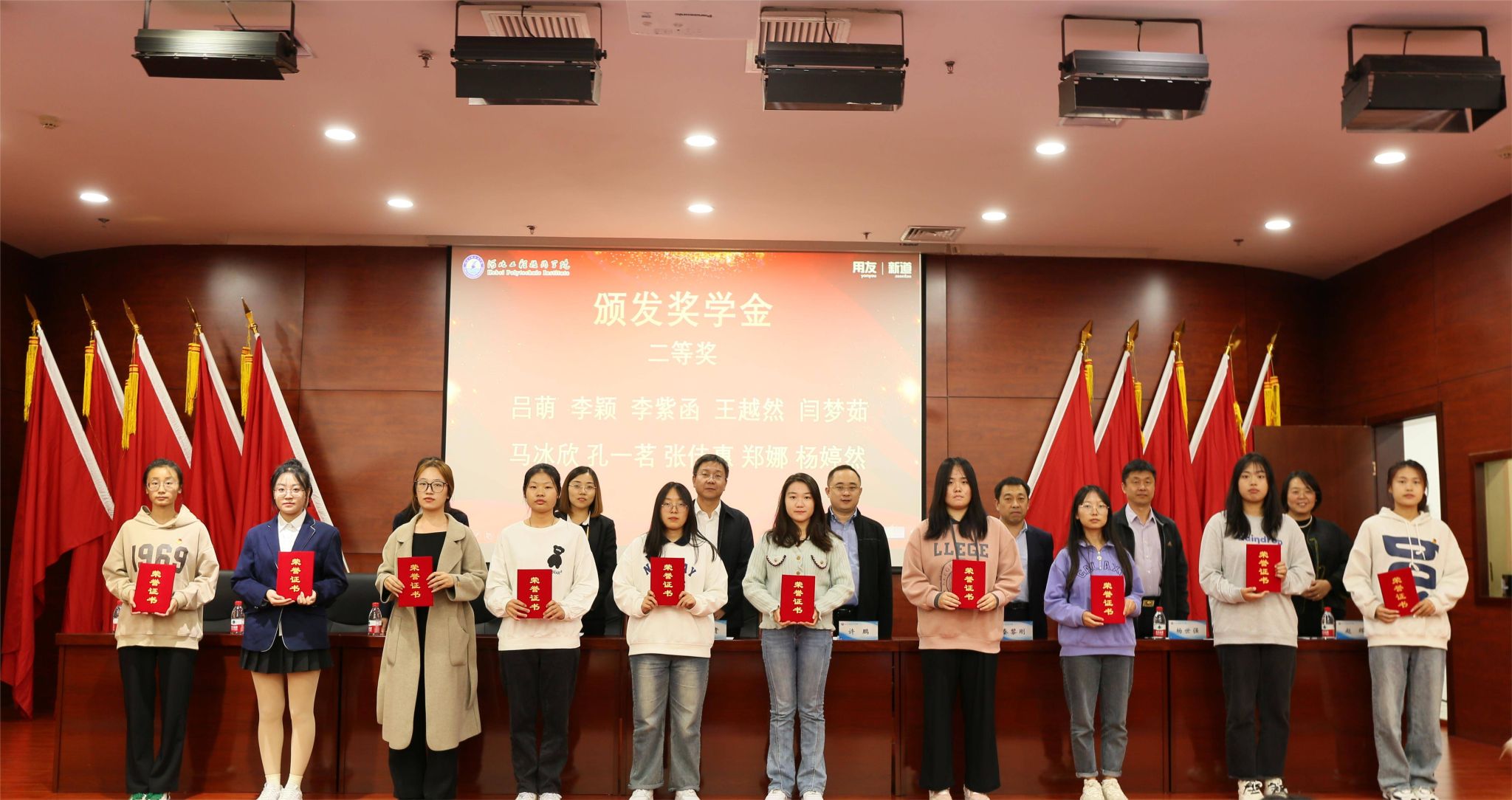 最后,与会领导为数智财经产业公司2022级新道班员工颁发“2022—2023学年用友新道数智财经产业公司综合奖学金”,并对获奖同学表示祝贺。