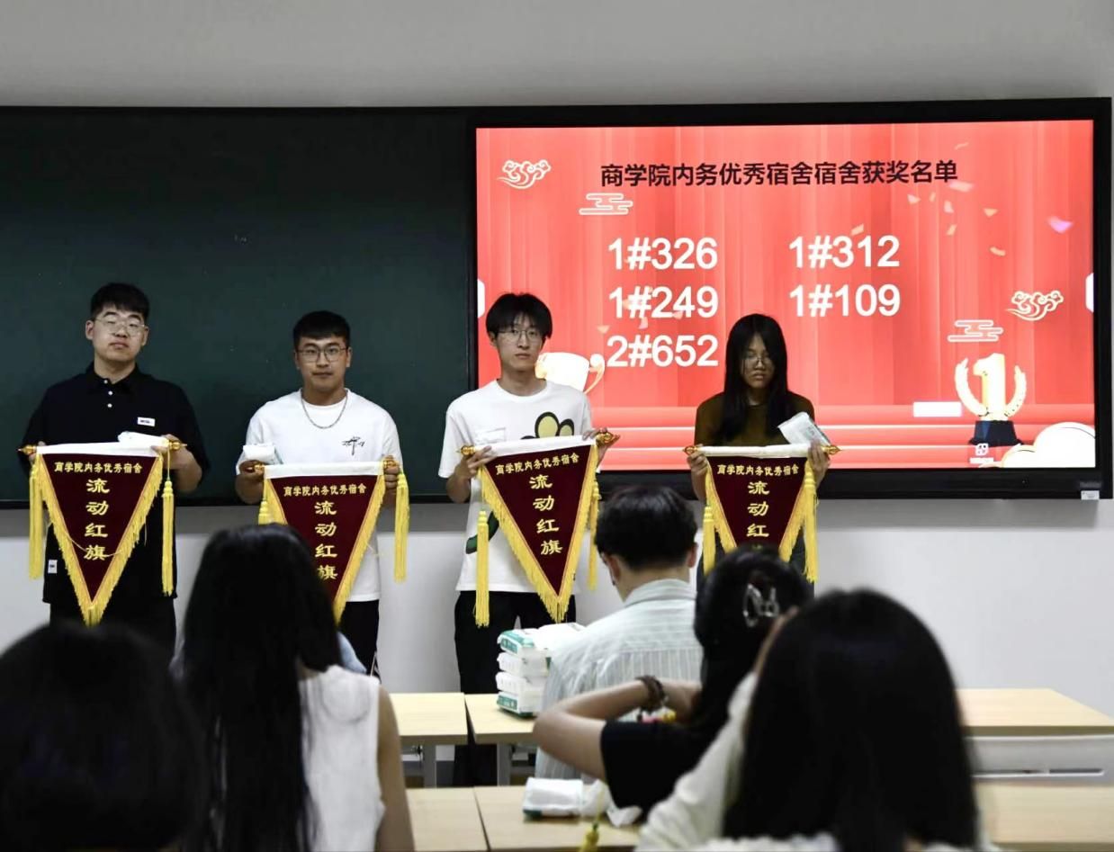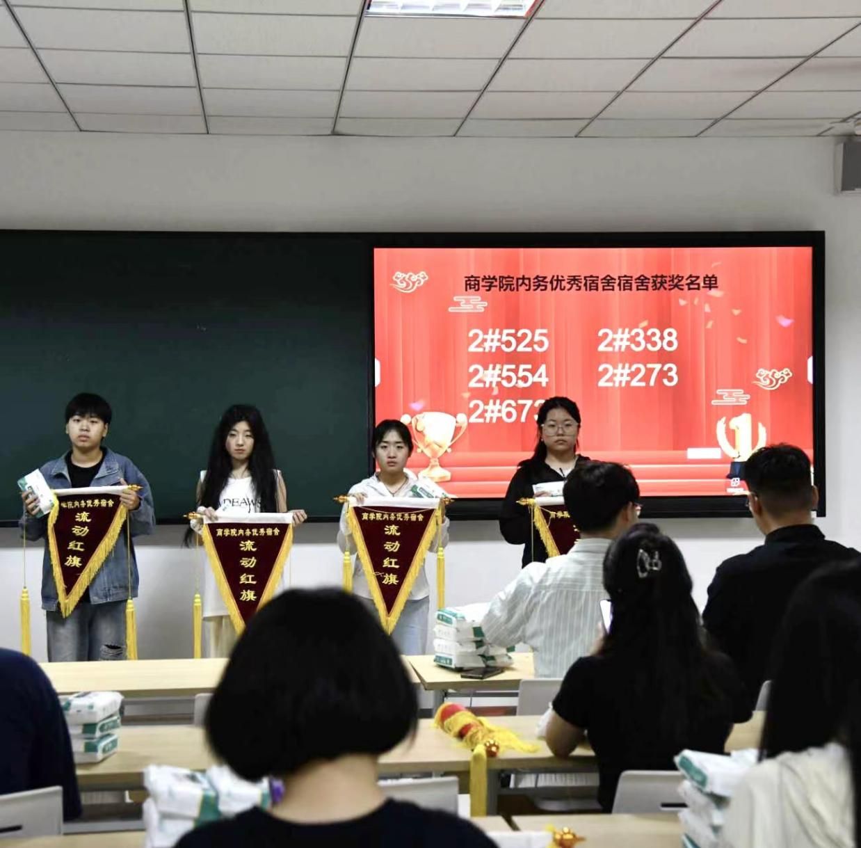 bg大游官方网站自律委工作人员、安全文明宿舍代表和内务优秀宿舍代表参加颁奖仪式。通过4月综合评比,共有6间宿舍获得“安全文明宿舍”和10间宿舍获得“内务优秀宿舍”荣誉称号。工作人员对以上优秀宿舍颁发流动红旗及奖品以资鼓励,并组织了以上优秀宿舍代表进行拍照留念。